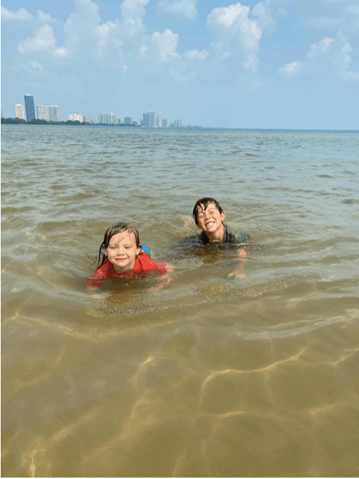 Eliza and Oliver Palm in Lake  Michigan.  They’ve moved from Montana with parents Matt and Mireille.  It’s amazing to have them all nearby.