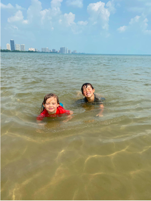 Eliza and Oliver Palm in Lake  Michigan.  They’ve moved from Montana with parents Matt and Mireille.  It’s amazing to have them all nearby.
