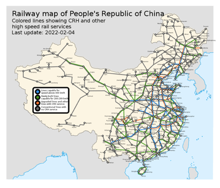No big shock, but China has more high-speed rails there than the rest of the world combined Their plan Is to double the amount of track and traffic in China in the next three years. By 2026, they plan to have more train tracks and trains than the US which is the only country with more right now.